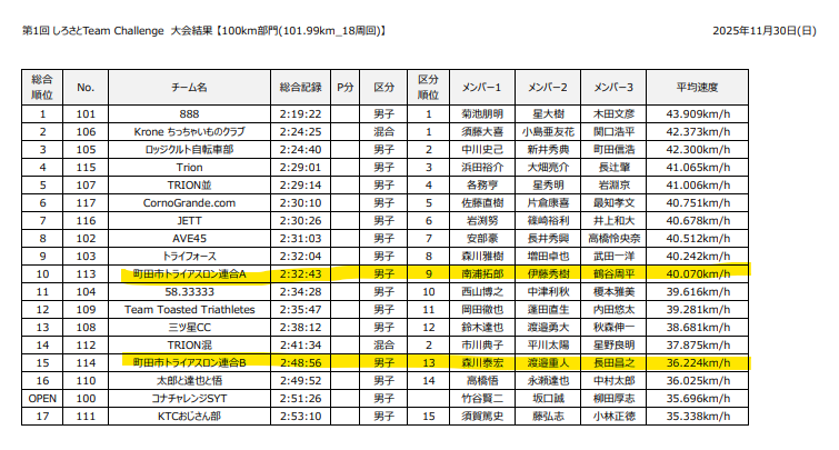 11月30日に行われた、しろさとチームTT(100km)に町トラメンバーで参加してきました。
